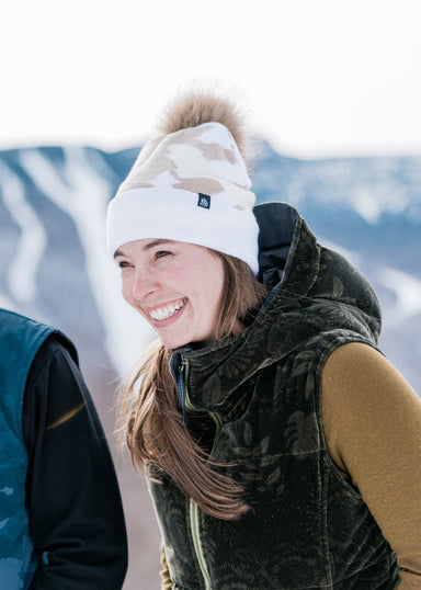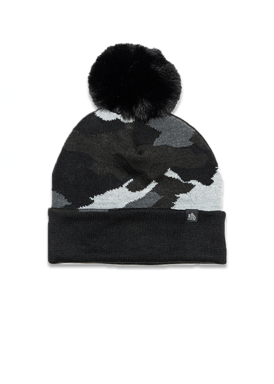 Whoever said that you can't look cute while looking to stay warm has never tried this hat! The Camo Faux Fur Pom Beanie is jacquard knit and incred...