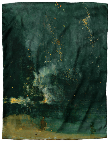 100% Cotton 20" x 20" James Abbott McNeill Whistler Nocturne in Black and Gold 1875 oil on panel Image courtesy of Detroit Institute of Arts