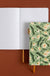Features: Laminated hardcover, exposed lay flat binding, gold elastic closure, ribbon bookmark