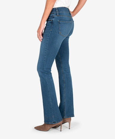 Easily transition from day to night in subtly flared bootcut jeans cut slim from soft, stretchy, deep blue denim in a mid rise fit. Fabric: 66% C...