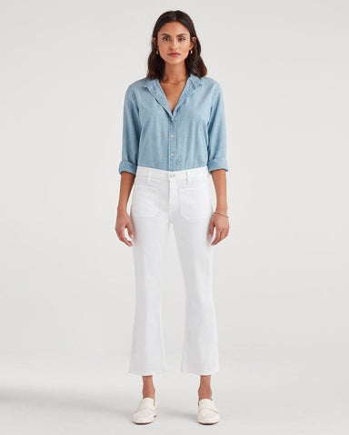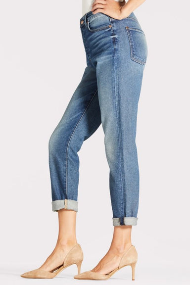 High waist ankle denim made from 11. 8 oz stretch denim and washed in a medium blue shade for a vintage vibe. Crafted with hand sanding and brushin...