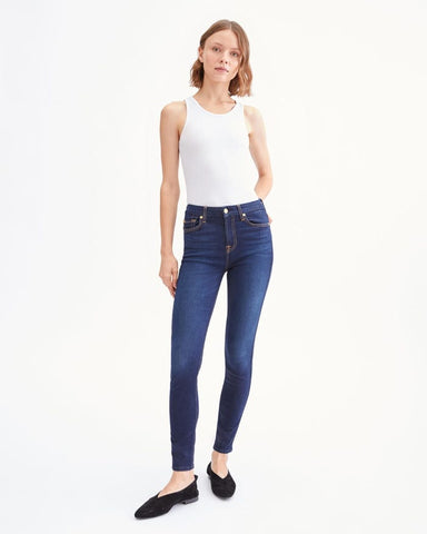 An ankle-length true skinny in 7 for All Mankind's signature soft & light stretch denim—features a subtly hand-sanded sleek deep indigo wash. ...