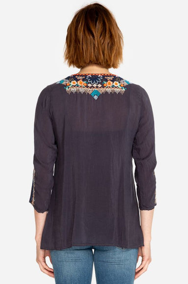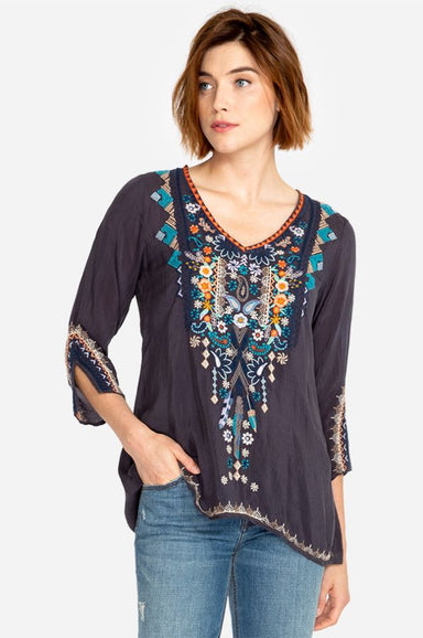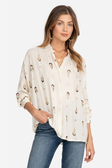 The Cerci blouse is airy, printed with colorful chevron stripes and gathered through the arm creating a blouson sleeve with a ruffle cuff. Wear yo...