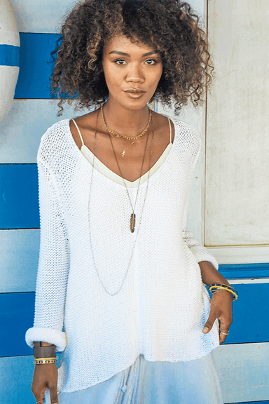 Effortlessly chic, this top is knit with our super-soft cotton yarn for lightweight comfort. Featuring a flattering V-neckline with button detail...