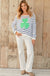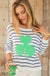 This relaxed-fit crew features blue stripes and a shamrock graphic. Slightly cropped, soft, lightweight, and breathable, this flattering cotton blend crew is perfect for demi-tucking into your favorite denim. Details include ribbed finishes on the neck, hem and cuffs.