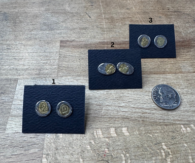 14k Gold plated (brushed gold finish) bezels hold a silver plated coin for the perfect mixed metal look. Replica coin Stainless steel earring post...