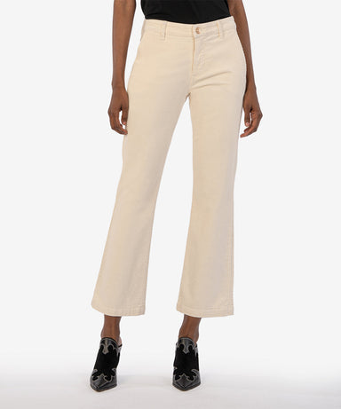 Stretchy corduroy brings all-day comfort to these mid-rise pants, while the cropped, flared legs with a raw hem make them right on trend. Fabric...