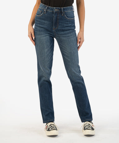 Experience comfort and style with these high-rise straight leg jeans in a classic dark wash. Made from stretchy material with Fab Ab for a flatteri...