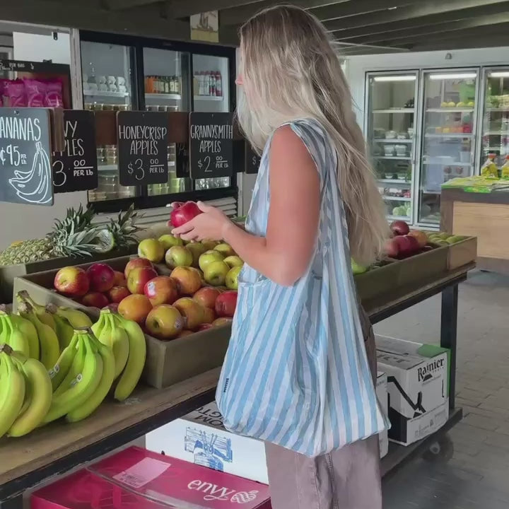 The Thread® Market Tote Bag is a stylish and functional reusable shopping bag designed for convenience on the go. Made from durable, lightweight materials, this tote easily folds into its own compact pouch, making it perfect for stashing in your car, backpack, or purse. Ideal for grocery runs, market strolls, or daily errands, it offers ample space without bulk.