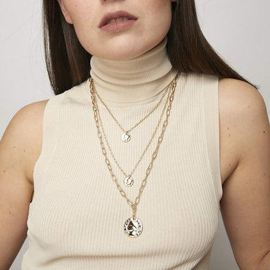 16" 14K gold plated (satin gold finish) and silver plated paper clip chain Coin charms with crystal for a touch of sparkle Custom toggle closure
