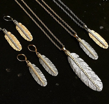 24K Gold plated feather & Sterling Silver plated stem Swarovski crystals Leverbacks Feather width .5" Earring height...
