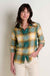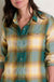 A flannel shirt fit for an outdoor queen. This one is a lightweight herringbone weave with a windowpane plaid made better by recycled polyester.