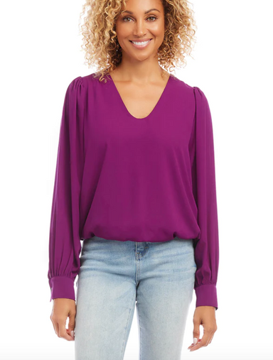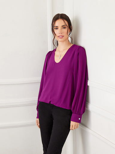 This airy chiffon blouse brings soft, romantic movement to any look. Featuring delicate pleating and blouson sleeves, the silhouette feels both pol...