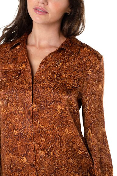 A flannel shirt fit for an outdoor queen. Ours is a lightweight herringbone weave with a sweet clover pattern made better by recycled polyester. Fi...