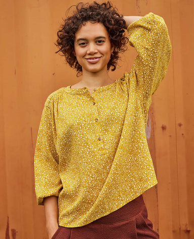 For days that call for a little dress-up. Feminine flair like full sleeves, shirring along the shoulder seam and a cute half-button placket make th...
