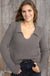 A modern twist on a polo-inspired sweater. This V-neck style features a marled chunky knit with shaker stitching that adds both texture and depth. The slightly cropped silhouette pairs effortlessly with high-waisted bottoms. Details include ribbed collar and cuffs.