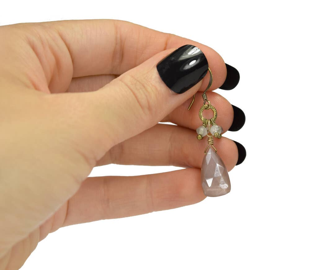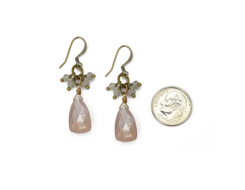 Coffee Moonstone Triangle Stone with Gray Cluster Earrings