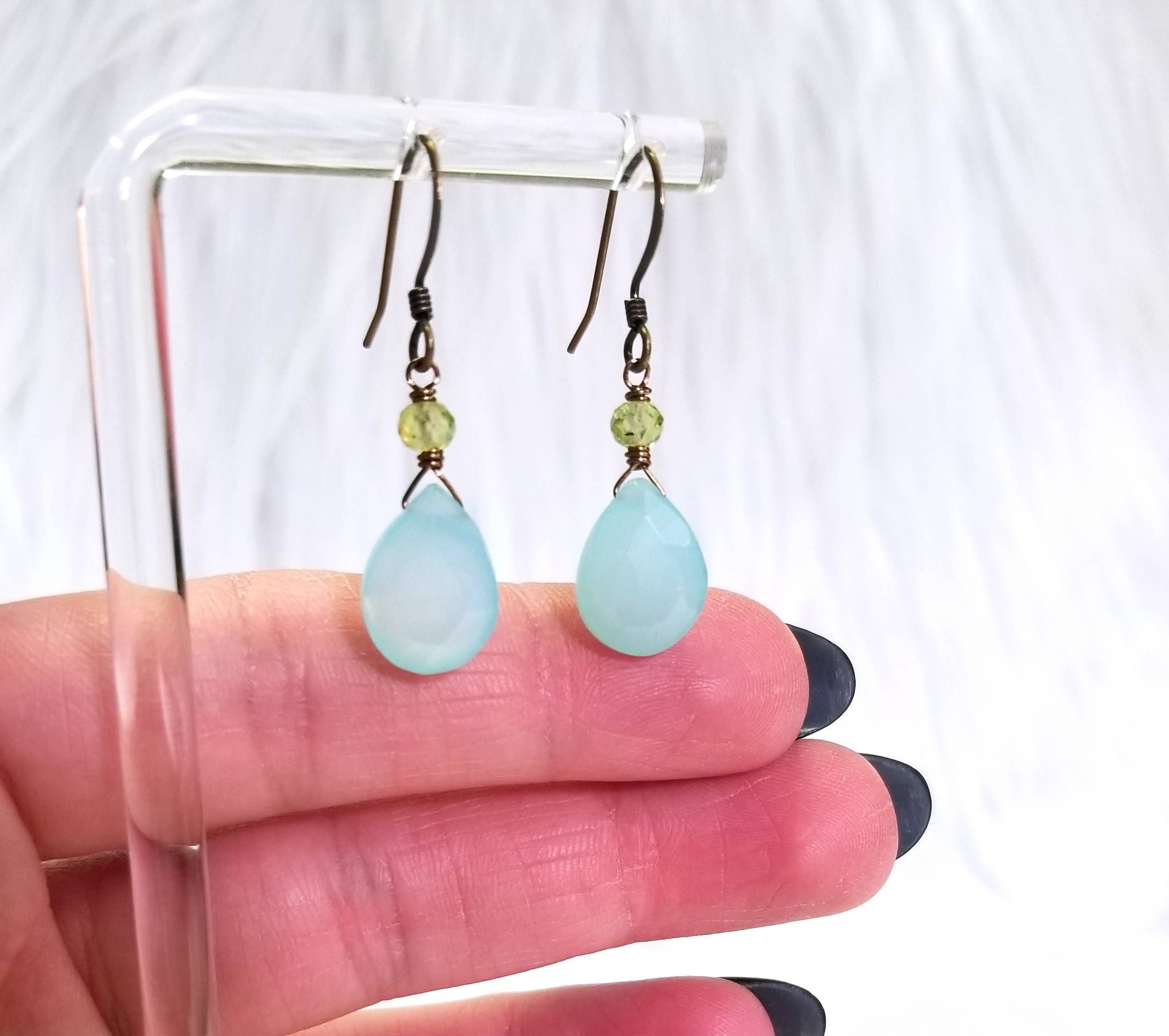 Seafoam Chalcedony and Green Peridot Classic Stone Earrings