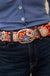 Gorgeous embroidered belt designed to be versatile with 5 sets of holes 2" apart so it can be worn at the hip or at the waist. You will love the slight stretch that conforms to the body after a few days of wear - just like your favorite pair of jeans!