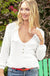 Effortlessly chic, this top is knit with our super-soft cotton yarn for lightweight comfort. Featuring a flattering V-neckline with button details and decorative chest pockets, it combines classic elements with modern style. The relaxed, cropped fit with flowy 3/4 sleeves and ribbed cuffs adds a laid-back touch, making it perfect for pairing with high-waisted jeans or skirts. Ideal for casual days or evenings out, this versatile piece is a wardrobe favorite.