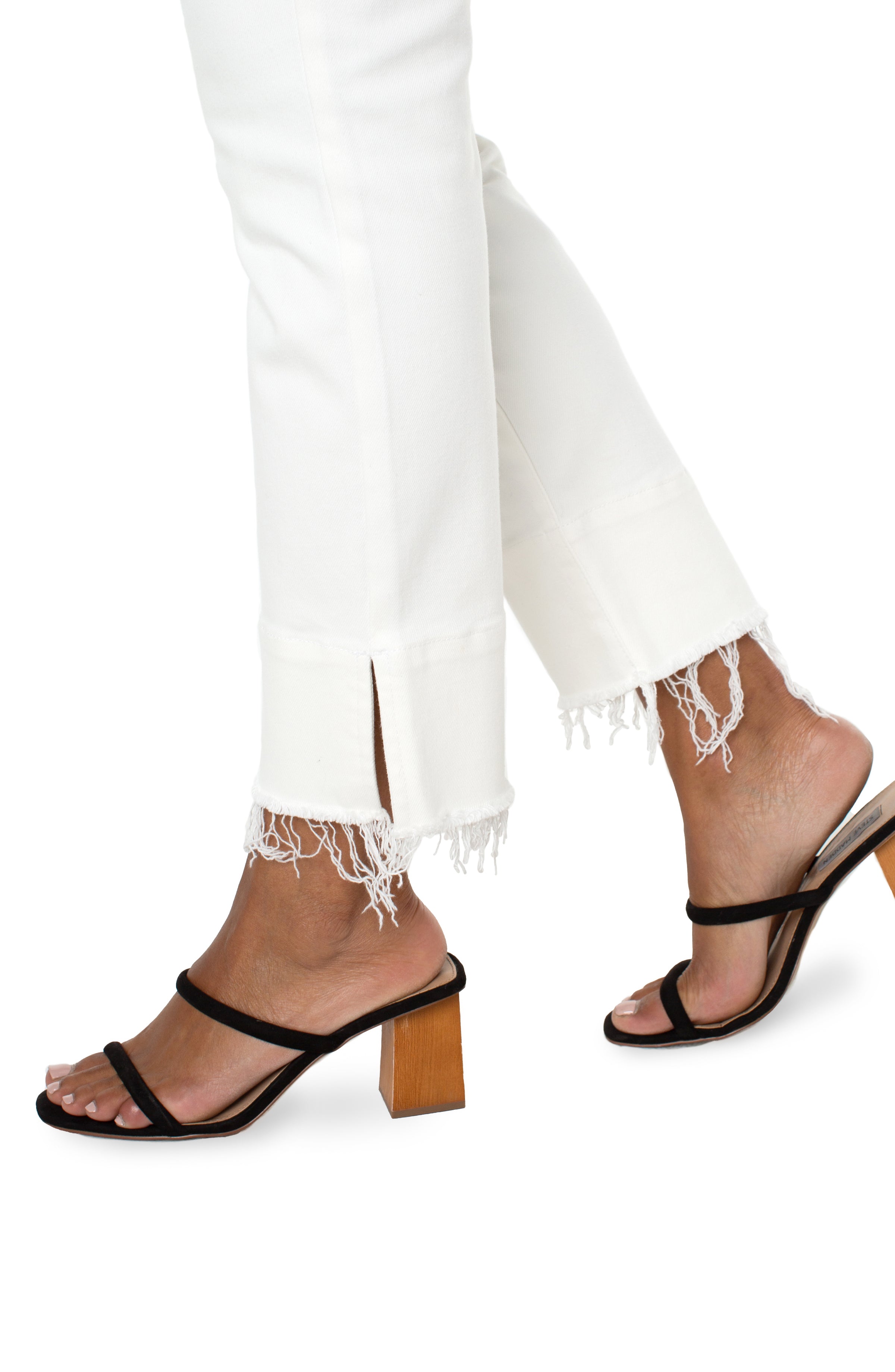 The new Non-Skinny Skinny Jean is the ideal fit between a skinny and a slim! This on-trend style is fabulous featuring subtle destruction and a fray hem! Pair it with a beautiful blouse for a versatile look when on-the-go!